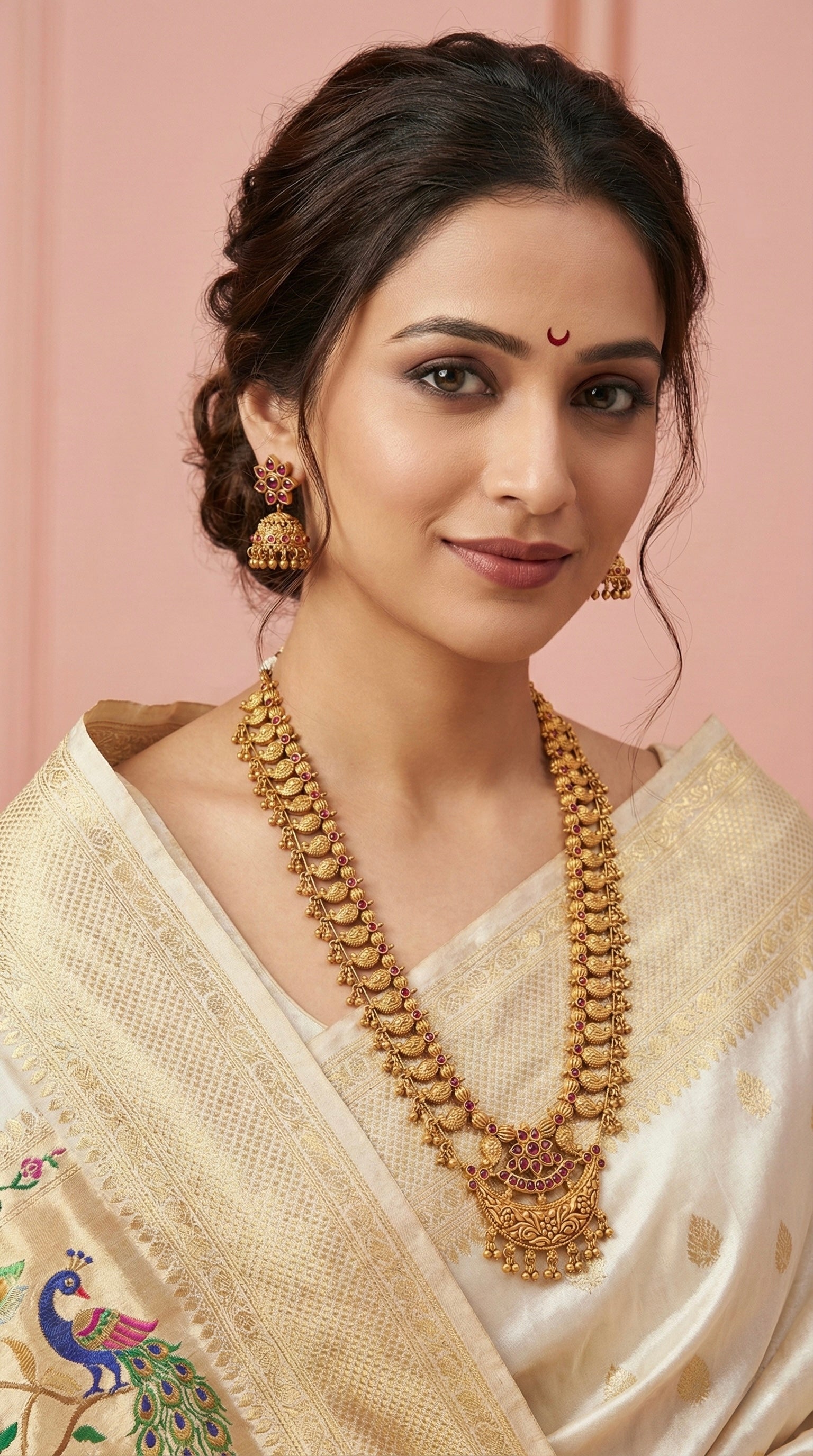 Collections: All Products Long Necklace Set Matt Necklace Set Necklace Sets New Arrivals Temple Gheru Necklace Set