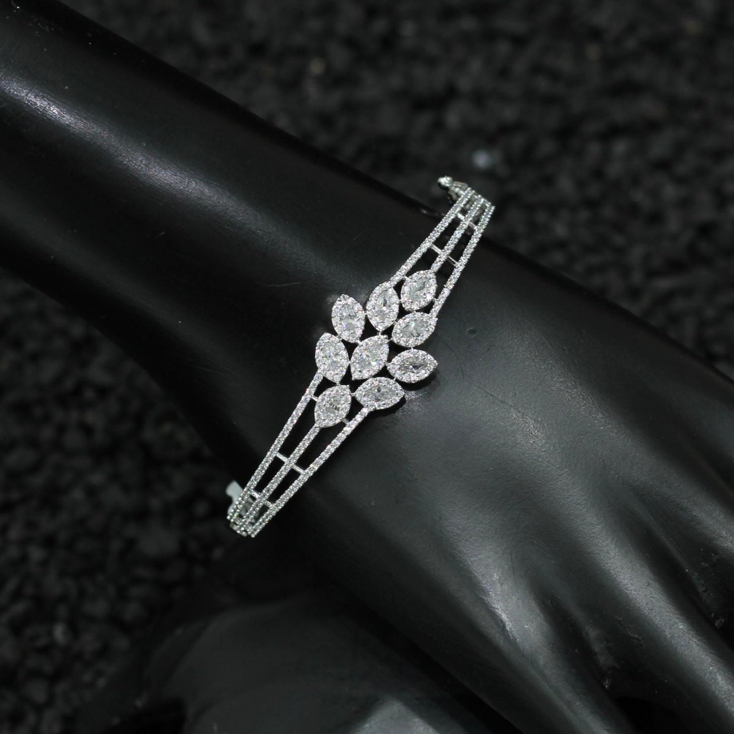 Silver Plated AD Kada Bracelet Lock Openable