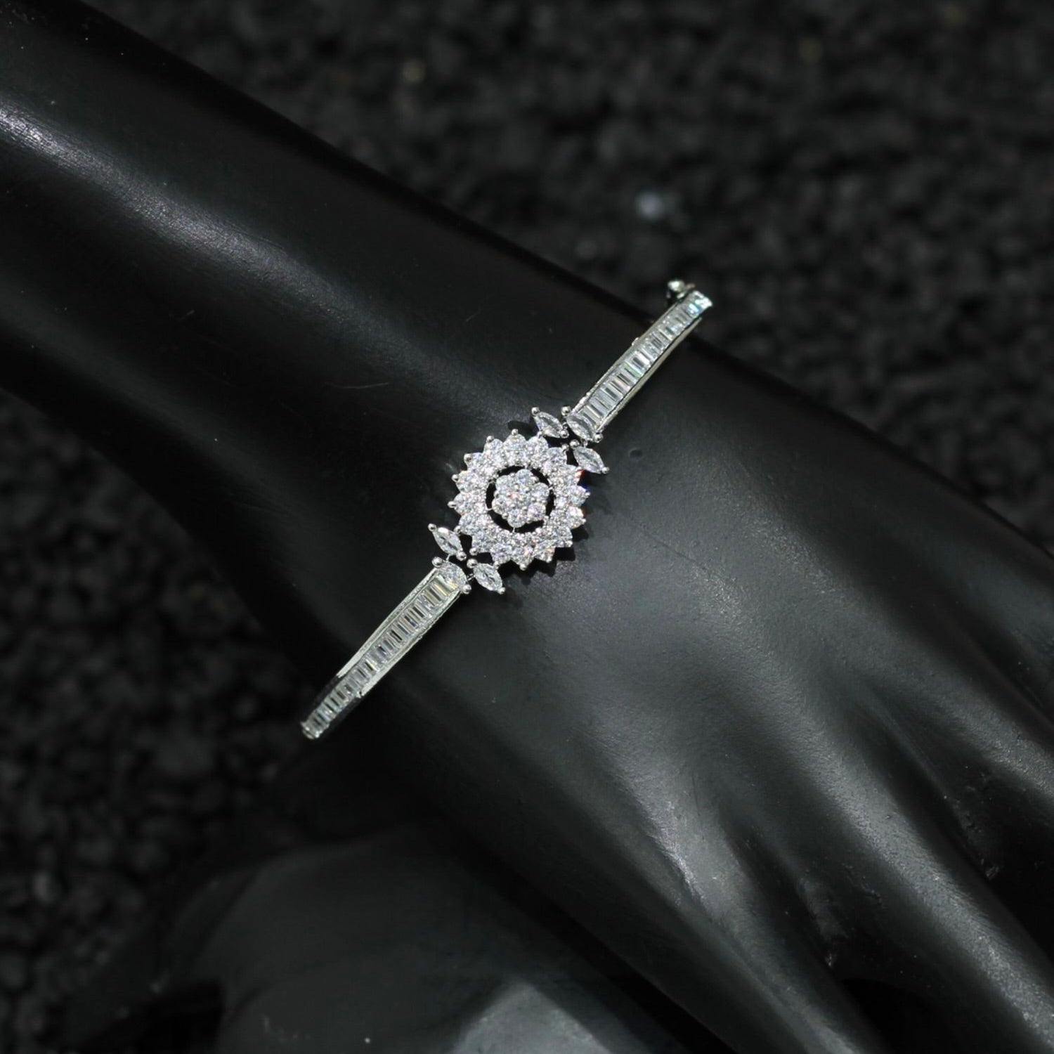 Silver Plated AD Kada Bracelet Lock Openable