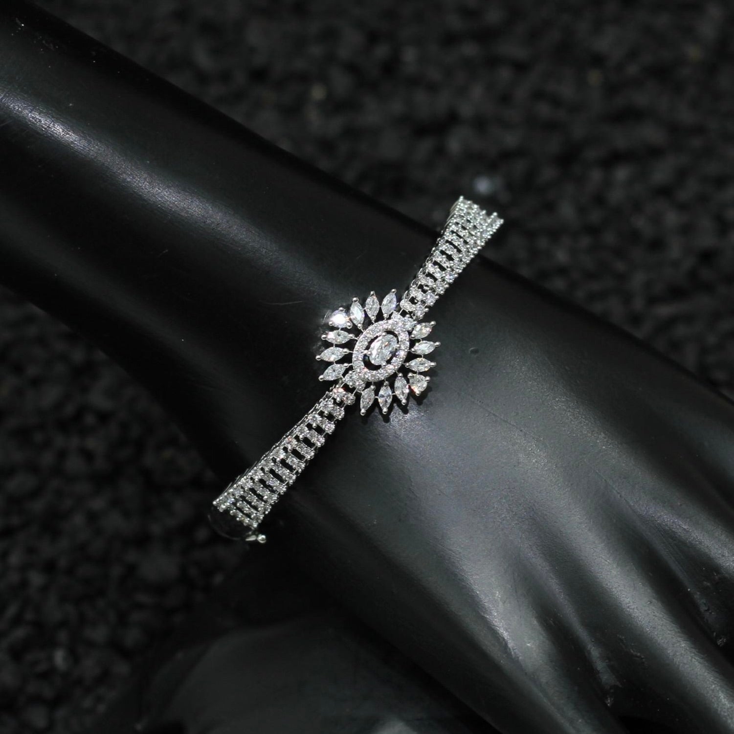 Silver Plated AD Kada Bracelet Lock Openable